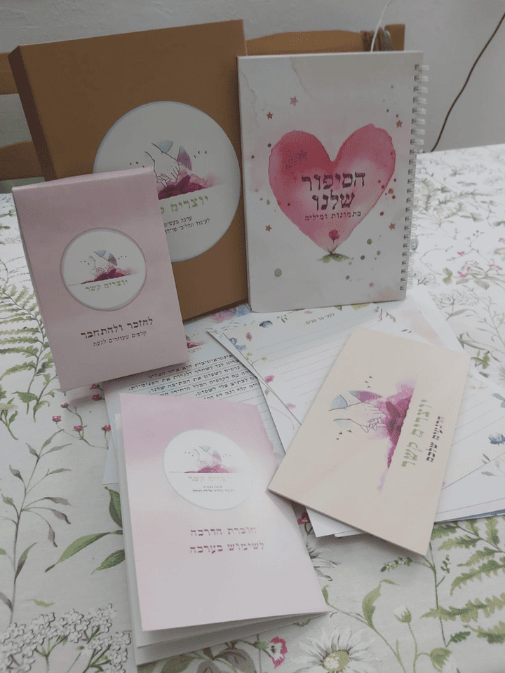 בתוך תהליכי עיבוד האובדן שלי לאורך השנים פגשתי מגוון א.נשים אחרי שישראל נפטר הצטרפתי לקבוצת הורים במסגרת עמותת חמניות – המעניקה מסגרת ליתומים של שכול אזרחי. הרעיון לערכה נולד בי ברגע אחד אבל כמו כל לידה אני בטוחה שלקבוצה הזאת חלק גדול באופן היצירה של הערכה, בצבע, ברכות ובעוד פרטים.
